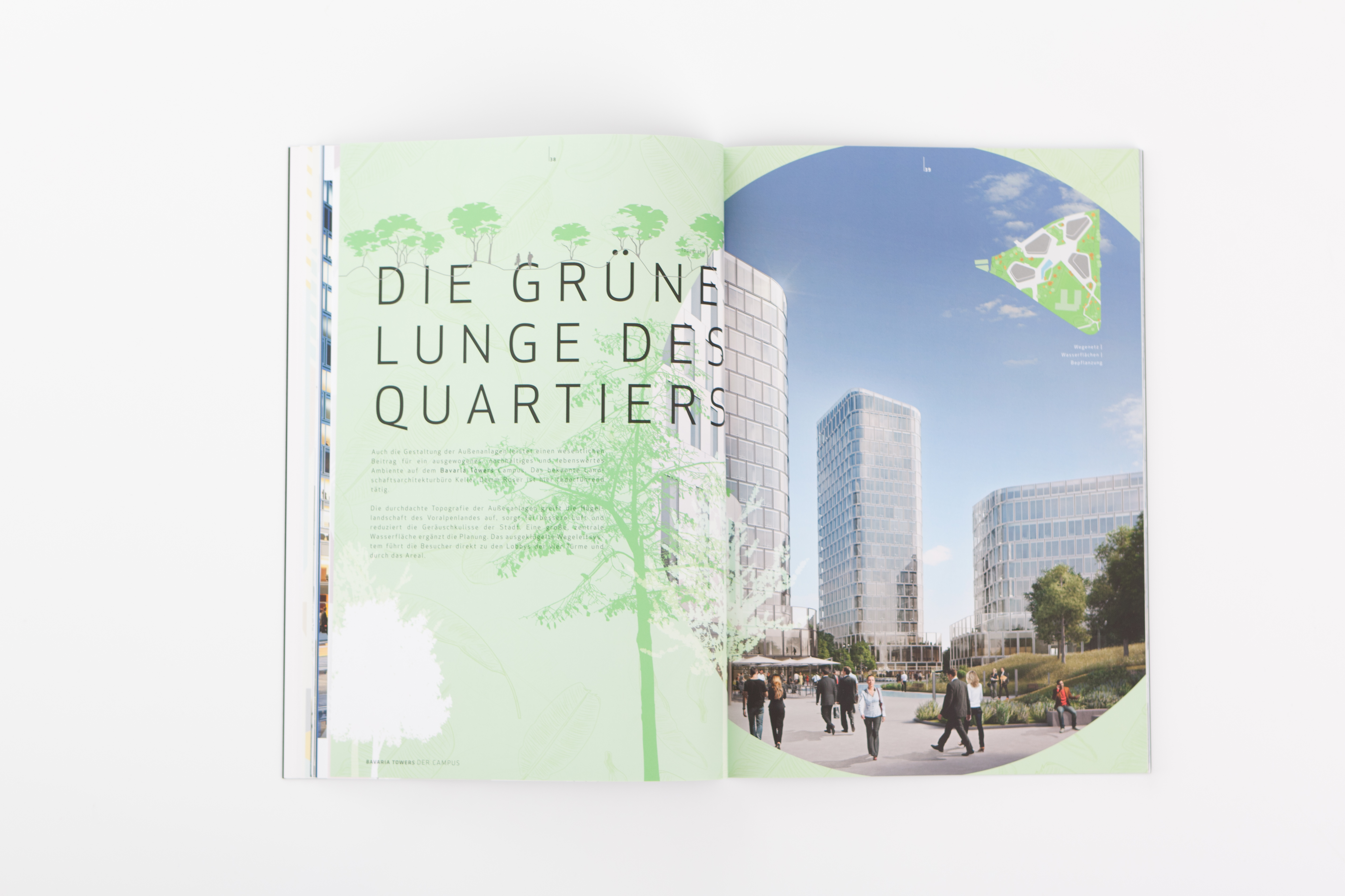 Edle Optik, opulenter Inhalt: Für das Landmark-Projekt Bavaria Towers, das die Skyline von München für immer verändern wird, haben wir ein neues Magazin entwickelt, das die bayerische Magazinwelt für immer verändern wird. Kommt das schwarze Cover noch recht klassisch-hochwertig daher, zeigen wir im Inhalt die ganze Bandbreite unserer Designkunst. Und natürlich alle Facetten des Ensembles, von der Ausstattung bis zur Dachterrasse, vom Style-Konzept bis zur Lobby-Gestaltung.