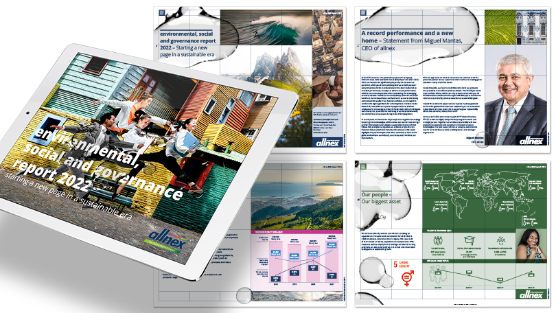 Transparenz ist das Thema unserer Zeit – in Sachen Nachhaltigkeit, Unternehmensführung und Verantwortung. Immer wichtiger wird daher das ESG-Reporting. Der Report hält fest, wie ein Unternehmen Umwelt und Gesellschaft beeinflusst und welche Maßnahmen es ergreift, um z. B. Ressourcen zu schonen, Emissionen zu verringern oder auch Mitarbeiter:innen zu unterstützen. Viele Daten und Fakten, die es spannend aufzubereiten gilt – und genau das haben wir für unseren Kunden allnex getan. Das von uns komplett neu entwickelte Designkonzept sticht aus der Masse heraus und lässt den allnex ESG-Report wie ein Magazin anmuten. Wiederkehrende visuelle Elemente, wie z. B. Lackflächen, lassen die Unternehmensprodukte spielerisch sichtbar werden und ziehen sich als roter Faden durch den gesamten Report. Ein Raster als Basis-Gestaltungselement schafft Struktur und sorgt zur gleichen Zeit für ein abwechslungsreiches Layout, das gekonnt mit Text, Bild, Diagrammen und Icons spielt – so macht es nicht nur Freude, über Positives zu berichten, sondern auch, davon zu lesen. Natürlich liefern wir alles aus einer Hand – und so runden Icon-Entwicklung, übersichtliche Diagramm-Aufbereitung, Bildrecherche und -bearbeitung sowie das Texten des gesamten Reports unser Leistungsspektrum ab. Sprechen Sie uns an, wenn auch Ihr ESG-Report nachhaltig Eindruck hinterlassen soll.