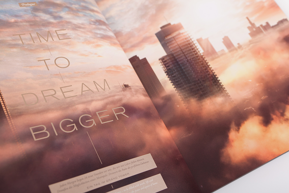 Der Name ist Programm: Mitten in Frankfurt entsteht mit 172 Metern und 47 Geschossen Deutschlands höchster Wohnturm, der Grand Tower. Bis Ende 2018 soll der spektakuläre Bau fertig gestellt sein. Die Agentur wurde nach einem Agentur-Pitch mit der Entwicklung der Vermarktungsunterlagen beauftragt. Unter anderem haben der Name Grand Tower und der Claim „Living the high life“ den Bauherrn gsp Städtebau überzeugt. Wir freuen uns sehr über dieses spannende Projekt und wollen mit dem Grand Tower noch hoch hinaus!