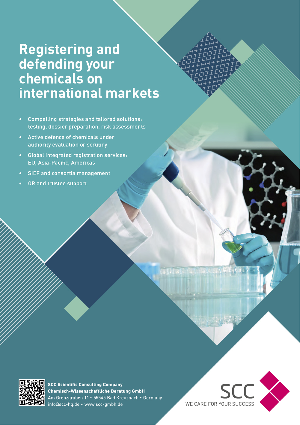 Für die international agierenden Regulatory Consultancy-Spezialisten der SCC GmbH aus Bad Kreuznach haben wir mit viel Feingefühl sämtliche Firmenbroschüren und Anzeigenserien einem Redesign unterzogen. Dem 2014 komplett neu entwickelten Corporate Design wurde mit lebendigen Farben mehr Frische und mit zarten grafischen Muster mehr Struktur verliehen – ohne die Basiselemente zu verändern. Der moderne, zeitgemäße Look ist ein echter Hingucker und erlaubt eine ausgezeichnete Differenzierung der unterschiedlichen Arbeitsfelder des Unternehmens. So vielseitig wie die Kernkompetenzen des Unternehmens zeigen sich nun auch die Designs, die den zentralen "Charakterzug" des Unternehmens perfekt widerspiegeln: Ein Gesamtwerk, dessen Einzelteile optimal abgestimmt ineinandergreifen und das stets auch für die komplexesten regulatorischen Anforderungen maßgeschneiderte Lösungen bietet.