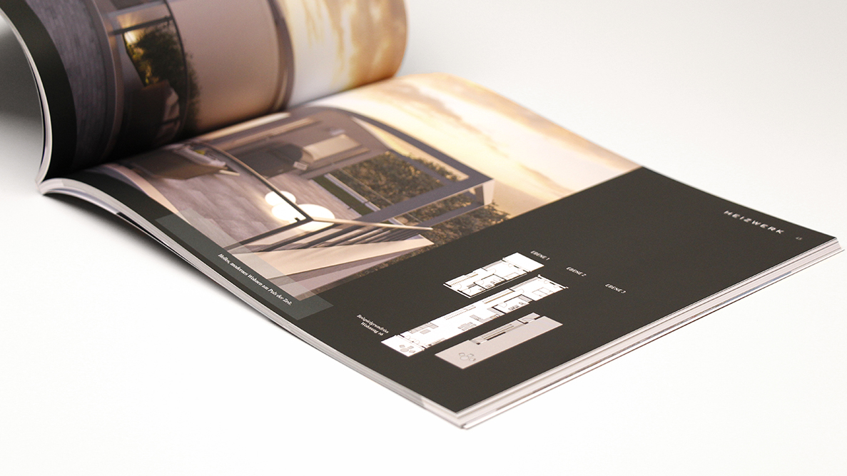 Urbane Lässigkeit und industrieller Charme – und das mitten im Grünen: Mit dem HEIZWERK präsentiert die DBA Deutsche Bauwert AG ein ganz neues Modern-Living-Konzept in ruhiger Stadtlage. In den großzügigen Räumen einer ehemaligen Heizzentrale entstehen außergewöhnliche Wohneinheiten mit hohen Decken und einem individuellen Charakter. Und genauso unkonventionell realisierte STERN das Exposé und den Internetauftritt. Mit seinem puristischen Design hebt sich die Broschüre im Querformat von seinen Vorgängern ab und verleiht dem Projekt Einzigartigkeit und Modernität.